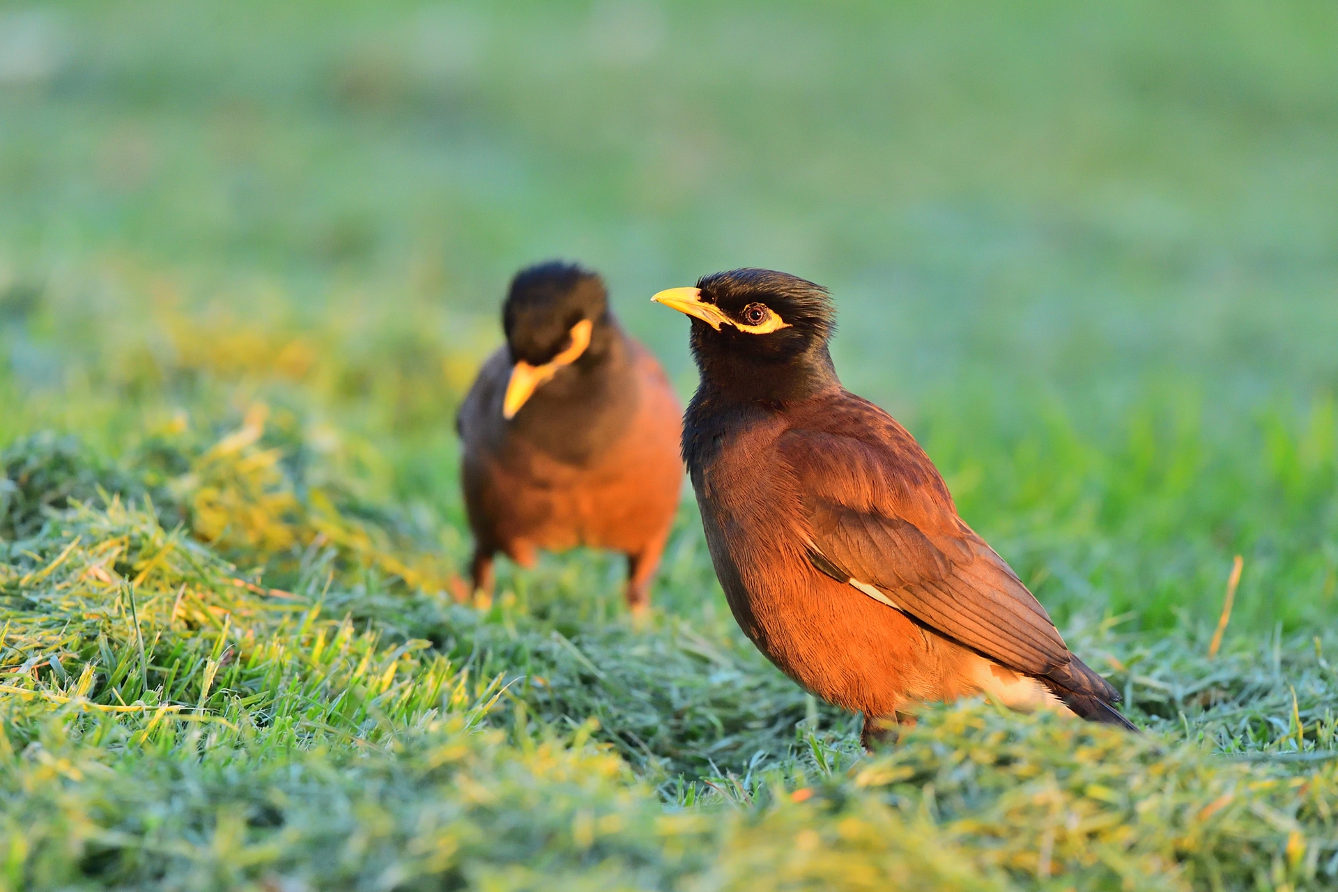 Javan Myna는 전에 White-vented Myna라고도 불렸는데, 하얀 엉덩이가 특징적이다. 역시 열대지역에 서식하는 Jungle Myna와 비슷하게 생겨서 동정에 주의를 기울여야 한다.