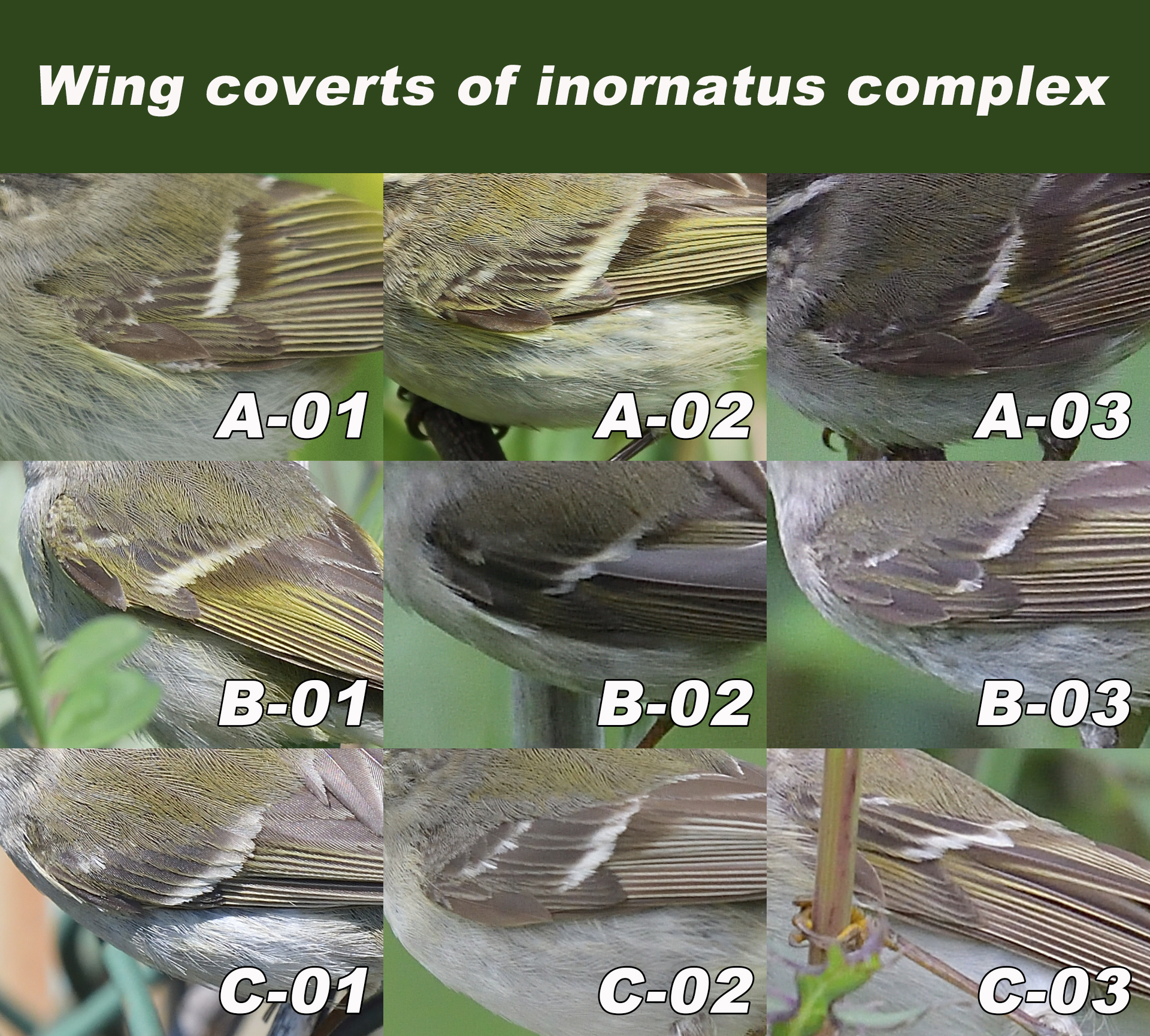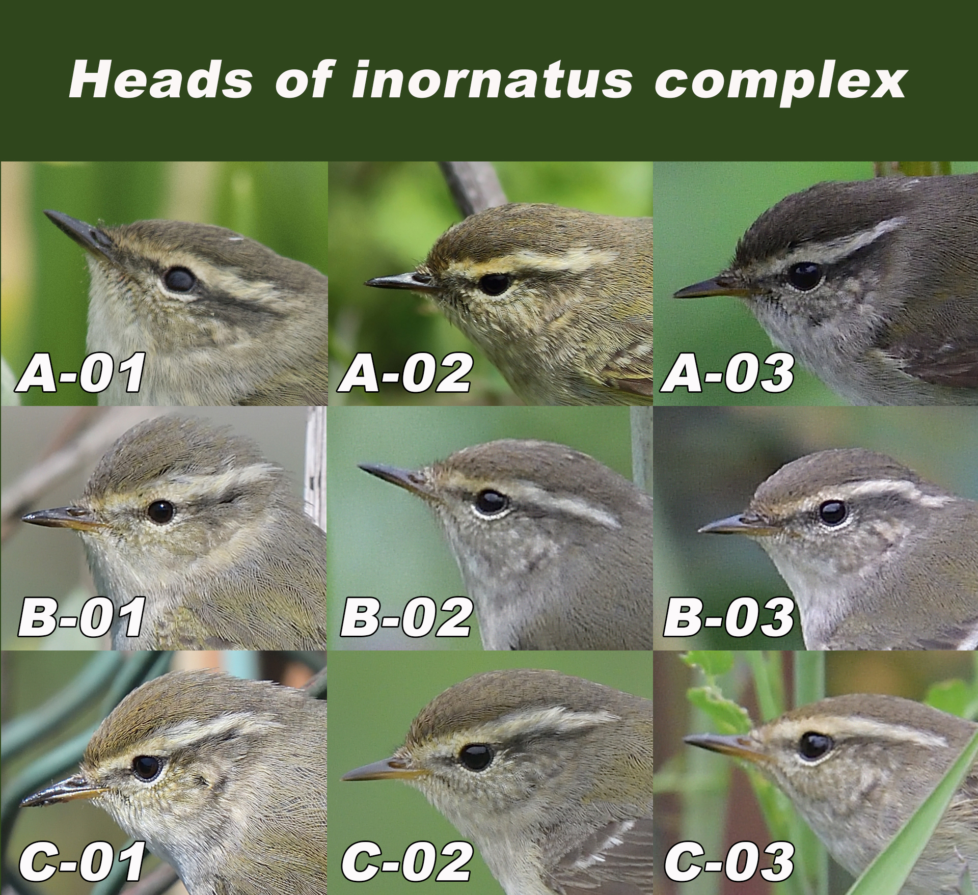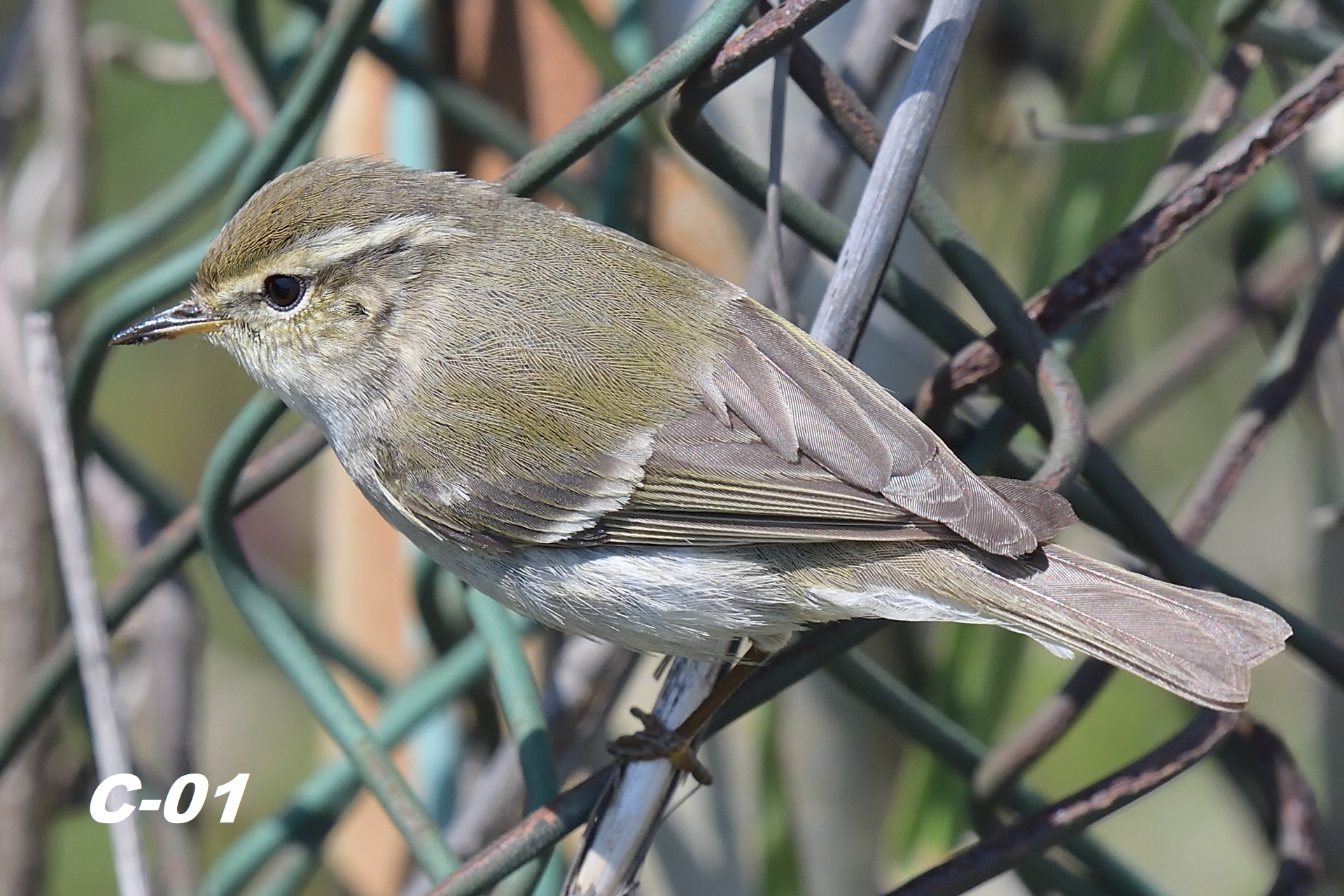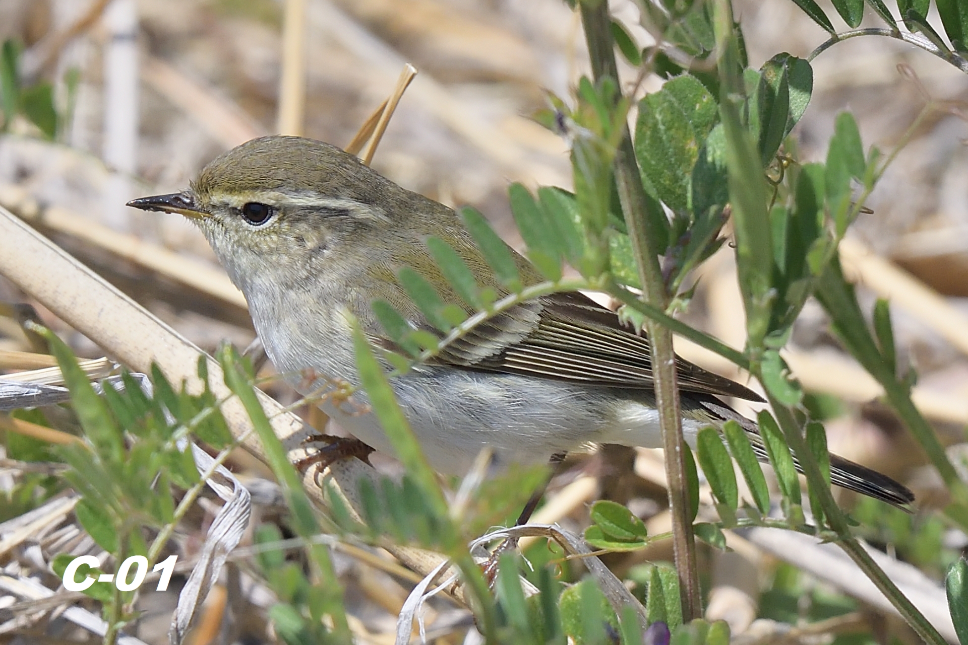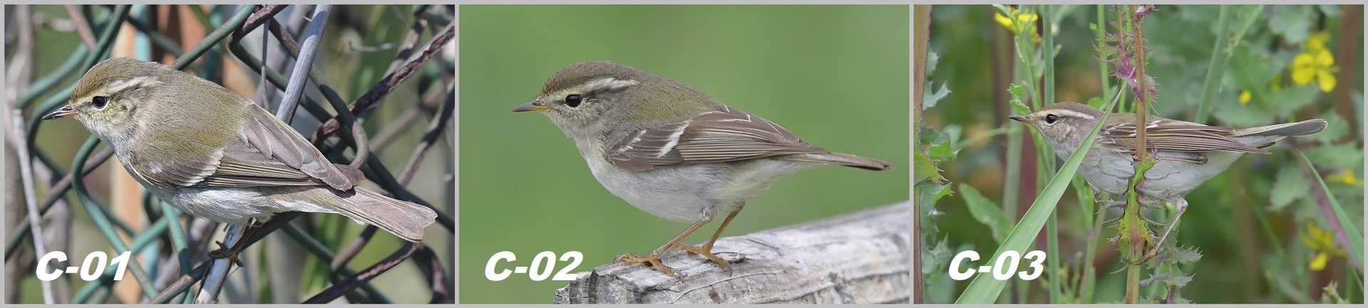 ▲ C-01 개체는 몇 가지 측면(모호하고 짧은 윗날개선, 밝지 않은 다리 색)에서 전형적인 노랑눈썹솔새에서 살짝 벗어나 있지만 대부분의 특징들이 노랑눈썹솔새의 범위 내에서 나타나고 있다. C-01 개체는 노랑눈썹솔새로 보인다.
