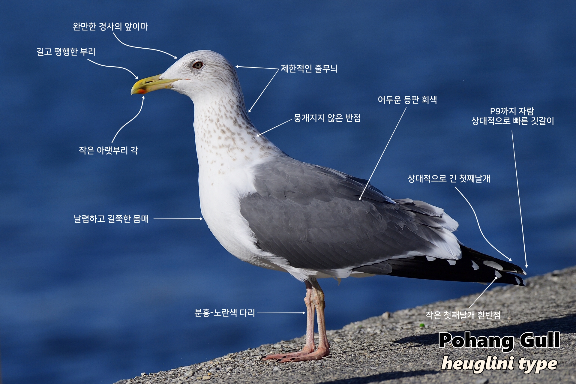 포항 갈매기가 전형적인 Heuglin's Gull(Larus fuscus heuglini)와 달라 보이는 점들